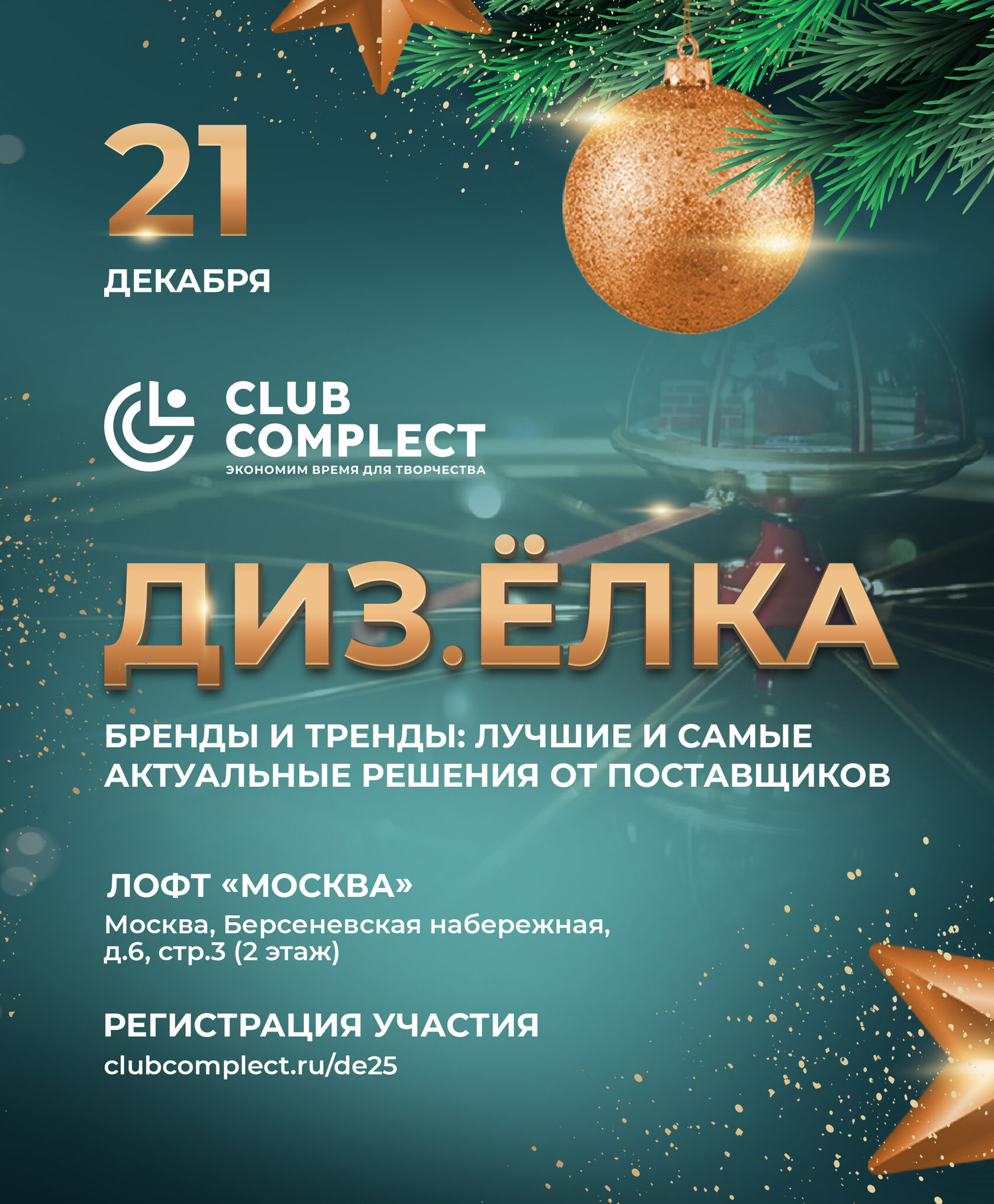 До встречи в этом волшебном пространстве, которое превратиться в новогодние декорации Дизайнерской Елки от Клуба Комплектаторов.